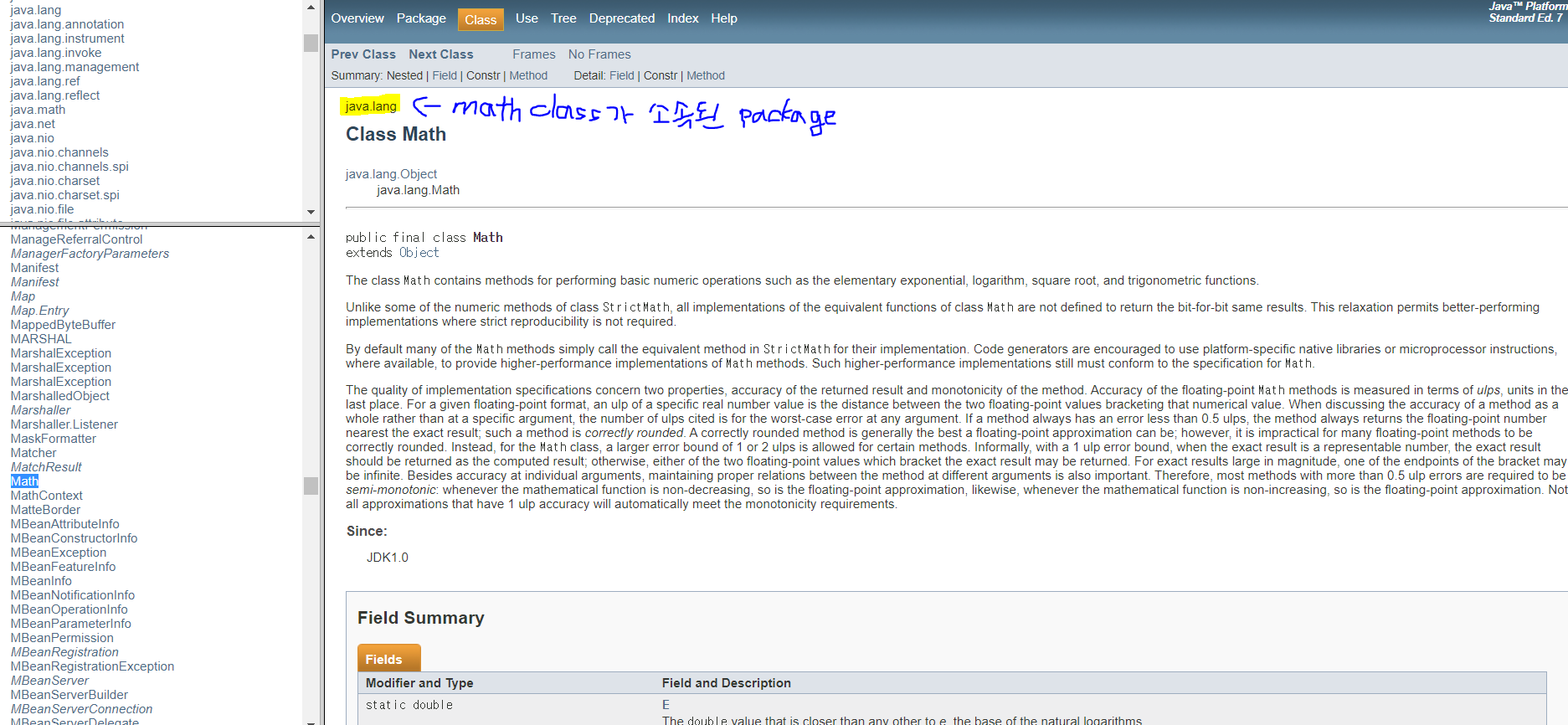 예를 들어 java.lang이라는 package 안에는 Math, String이라는 class가 존재. class는 variable과 method들을 grouping한 것.