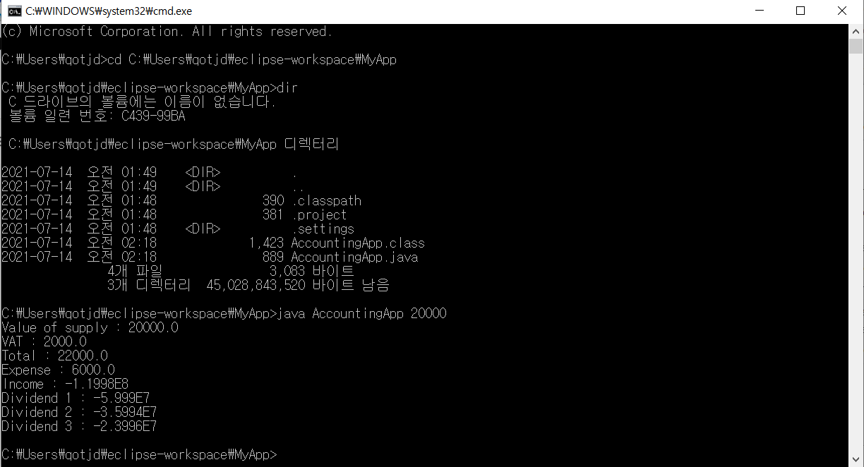 AccountingApp을 만들고 실행해 보았다.